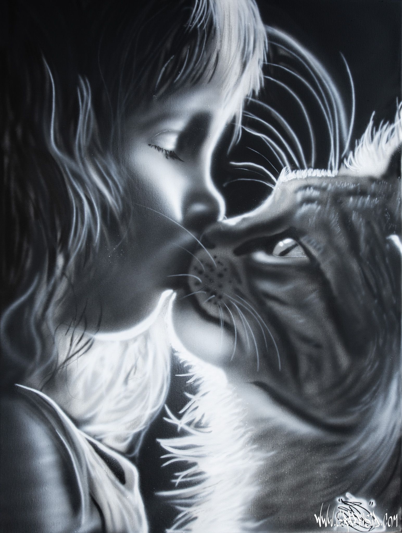 Spécialisé dans le réalisme, les personnages, les animaux et les paysages, SID excelle dans l'art de capturer la vie et l'émotion dans ses œuvres. Que ce soit sur un mur avec des sprays, sur une carrosserie avec des pinceaux ou un aérographe, ou même sur toile, son talent s'exprime avec éclat.